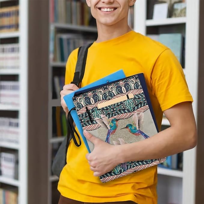 COEQINE Aesthetic Hummingbirds Aztec Style Book Cover with Zipper and Handle for Portable Travel Accessories Washable Fashion Book Lovers Book Protection Pouch