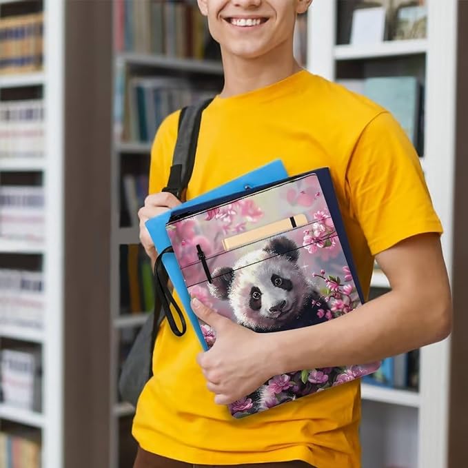 COEQINE 9"x11" Book Covers for Hardcover Cute Panda Animal Book Sleeves with Zipper Book Cover for Book Lovers Book Pouch Book Protctor Pouch Book Covers for Hardcover Washable Pink Cherry Blossom