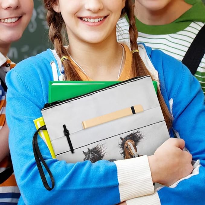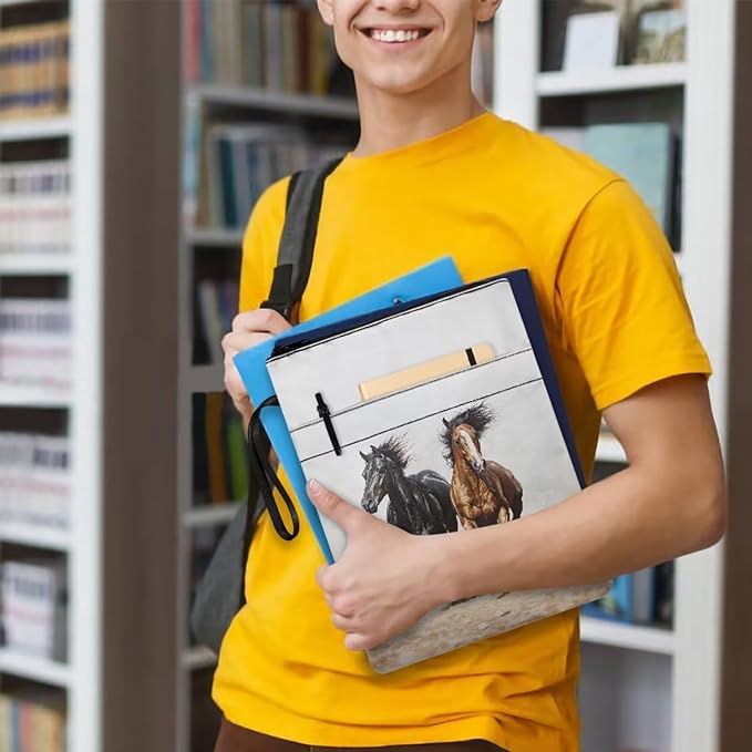 COEQINE Horses Themed Zippered Book Covers for Soft Cover Books Hard Cover Cool Animal Book Protectionale Book Sleeves Case with Hand Handles Portable Chain