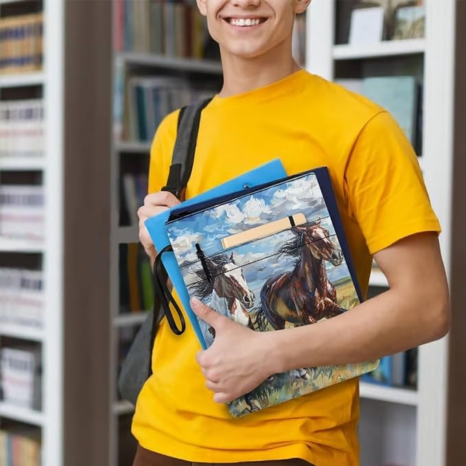 COEQINE Art Horse Book Cover with Zipper Portable Book Sleeves Book Lovers Gifts Book Cover with Pen Holder Washable Book Sleeve Book Cover Book Protector Horse