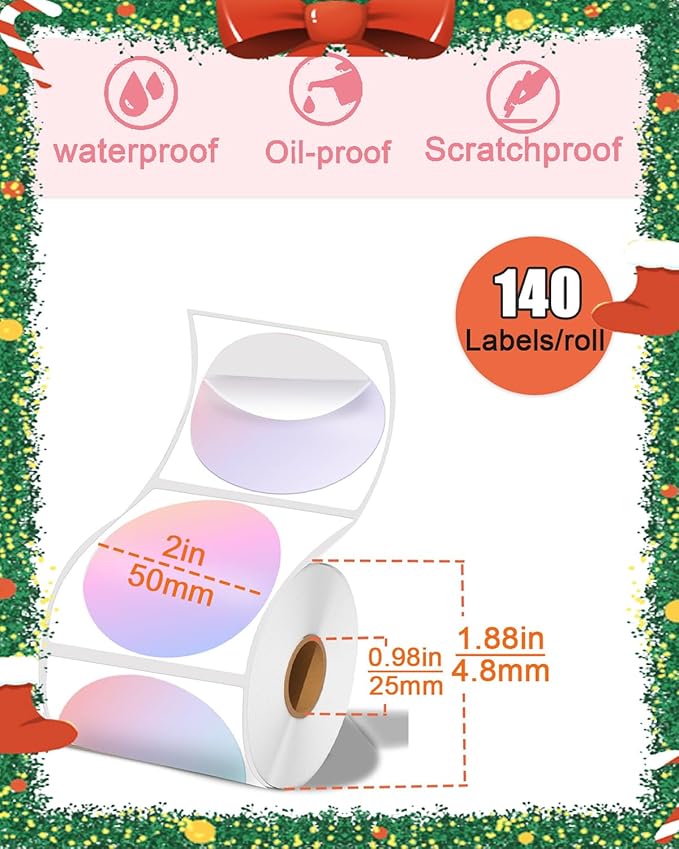 - [Specifications]: Wonlabel Round thermal labels with the size: 1.96''×1.96'' (140 Labels/1 Roll, White),Paper tube diameter:0.98"(25mm)