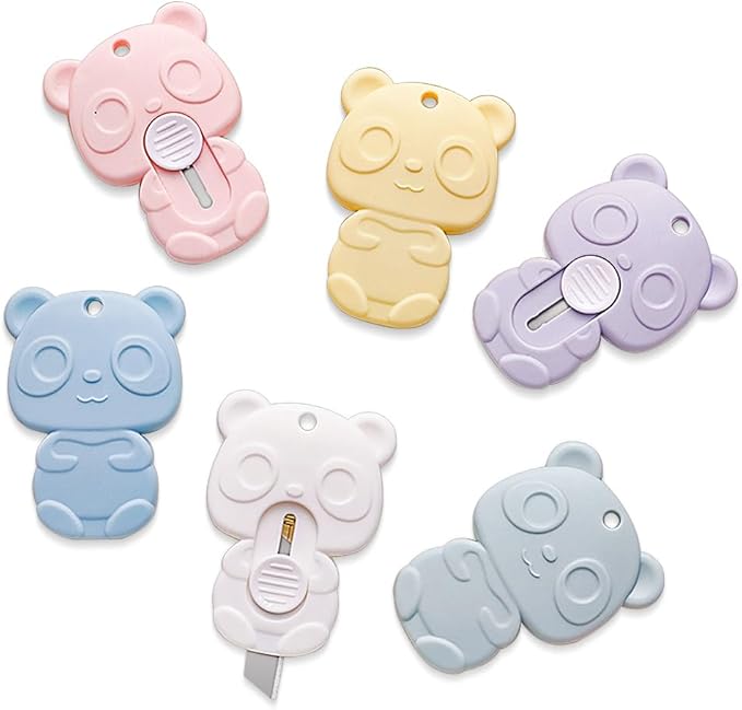 - Cute Panda Box Cutter: You can receive 6 panda shaped mini utility knives in different colors. Sufficient quantity, cute appearance, enough to meet your daily needs and use, suitable for box opening, paper cutting, letter opening and DIY crafts