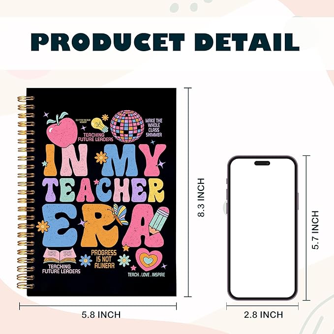 BearCake Groovy Teacher Notebook Journal, Teacher Gifts for Women, Teacher Appreciation Gifts, Thank You Teacher Gifts, Teacher Desk Supplies, in My Teacher Era Hardcover Spiral Notebook 5.5x8.3