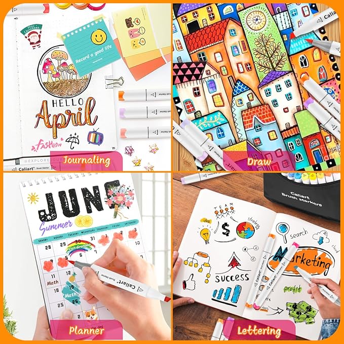 - 🎨 Color-Coded Caps & Bonus Case: The color-coded caps allow for ease in organization and to identify colors quickly. Ergonomic design makes working with these brush marker pens easy for a long time. Equipped with a beautiful form-fitting black carrying case perfect for traveling and storing! Great gift for Christmas, Thanksgiving, art teachers, school students, families, friends, women, kids, girls. Feel totally free to contact us for a replacement if the original item has any defect.