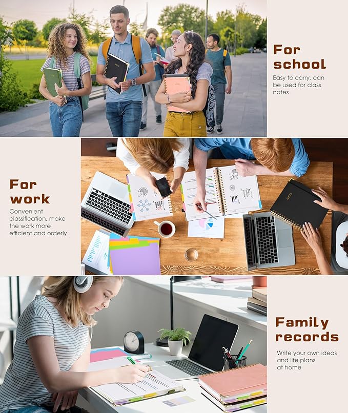 - 【Hardcover Notebooks for Work School】This spiral 5 subject notebooks is an excellent choice for students, professionals, or anyone who like to write things down and needs to keep them organized. A stylish look with gold color stamp font, binding brighten up your dreary desk, also a wonderful gift to work organization, back to school or family records.