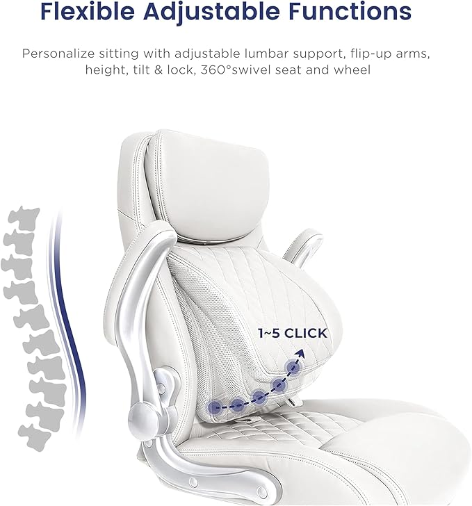 Nouhaus Ergonomic Office Chair Premium Microfiber Leather Adjustable Lumbar Support & Armrests, High Back Comfy Desk Gaming Chairs Executive Computer Swivel Chair Tilt Function(Posture,White)
