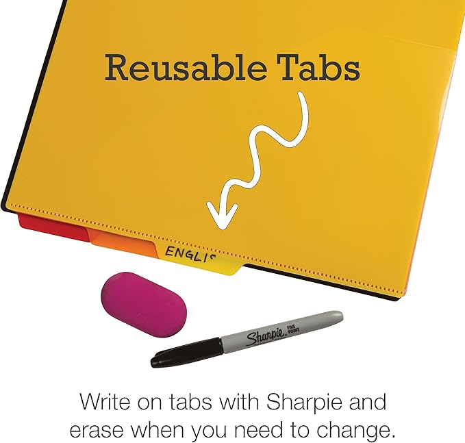 - Write-on and Erase Color Tabs - Locate and categorize more efficiently by writing on your reusable colored tabs with a marker and erasing when done, making it easy to clean for multiple uses