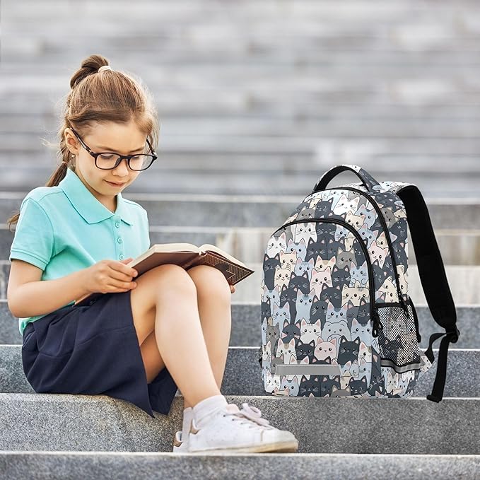 MNSRUU Laptop Backpack with Chest Strap, Cute Cat School Backpack, Travel Hiking Backpack for Boys Girls Teen Adult, Rucksack, Knapsack