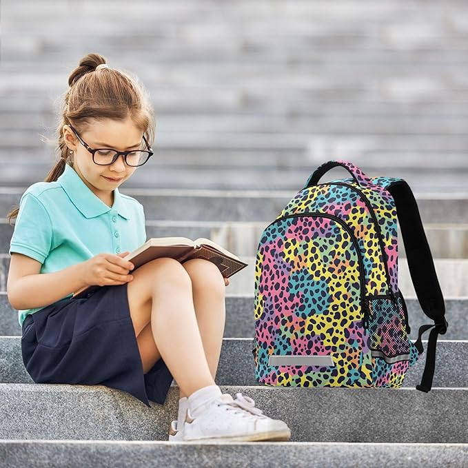 MNSRUU Laptop Backpack with Chest Strap, Leopard School Backpack, Travel Hiking Backpack for Boys Girls Teen Adult, Rucksack, Knapsack