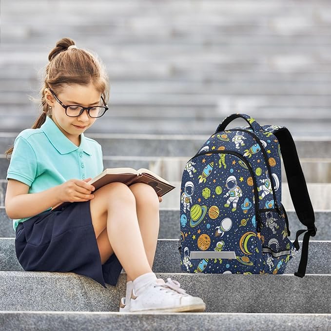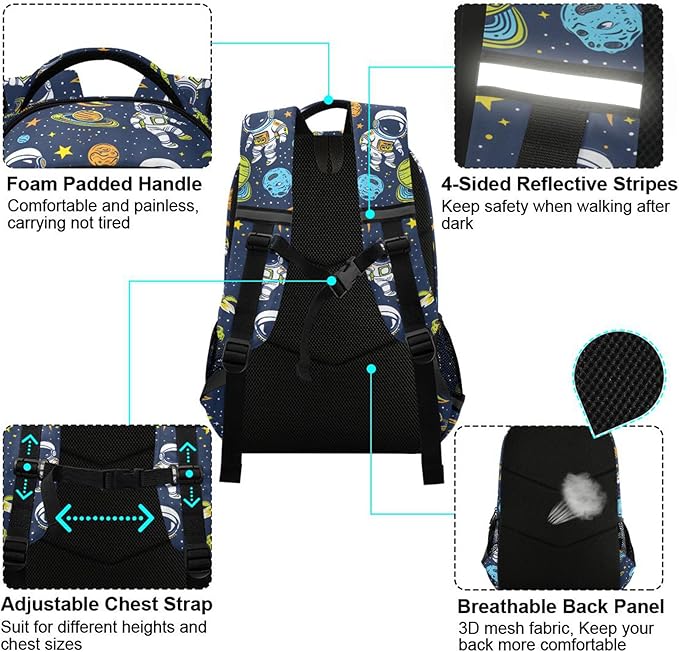 MNSRUU Laptop Backpack with Chest Strap, Astronauts and Alien in Space School Backpack, Travel Hiking Backpack for Boys Girls Teen Adult, Rucksack, Knapsack