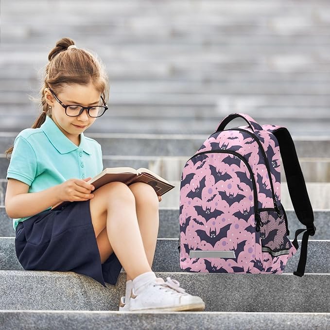 MNSRUU Laptop Backpack with Chest Strap, Cute Bats School Backpack, Travel Hiking Backpack for Boys Girls Teen Adult, Rucksack, Knapsack