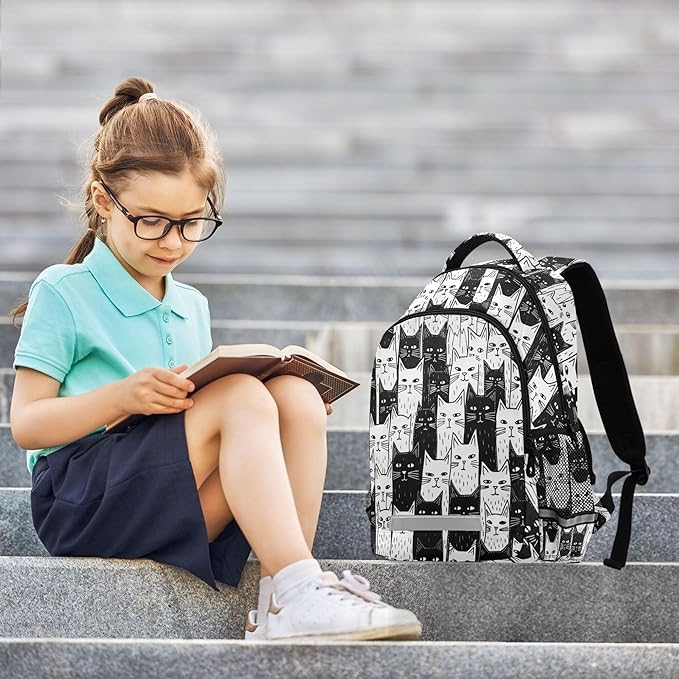 MNSRUU Laptop Backpack with Chest Strap, Black Cat School Backpack, Travel Hiking Backpack for Boys Girls Teen Adult, Rucksack, Knapsack