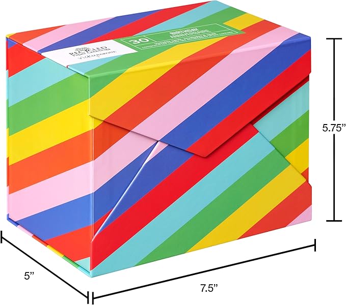 - This deluxe boxed assortment includes 30 cards, 30 envelopes, a decorative striped rainbow keepsake box for storage and 30 envelope seals featuring fun patterns and graphics