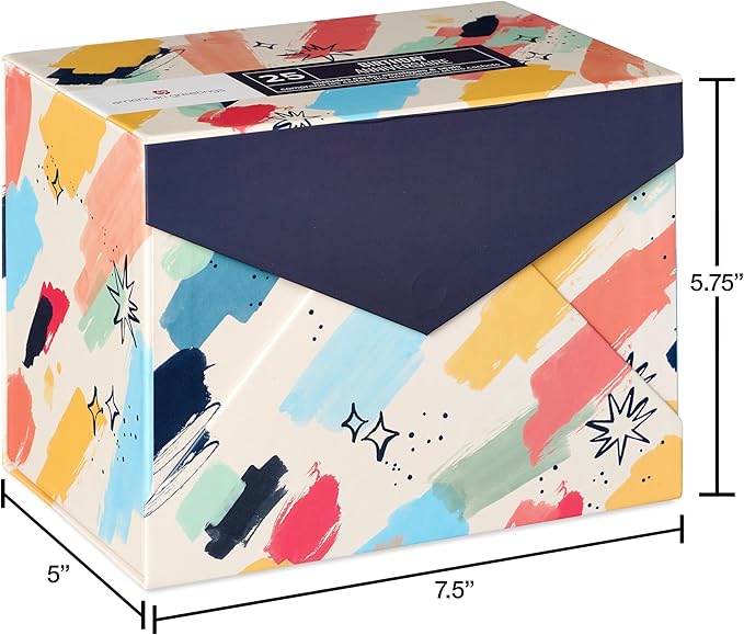 - This deluxe boxed assortment includes 25 cards and 25 envelopes, a decorative keepsake box for storage, and 25 seals featuring the classic American Greetings logo