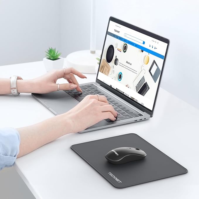 TECKNET Mouse Pad with Anti-fray Stitchin, Waterproof Surface & Non-Slip Rubber Base with Stitched Edges Gaming Mouse Mat for Laptop,Compatible with Laser and Optical Mice - Dark Gray