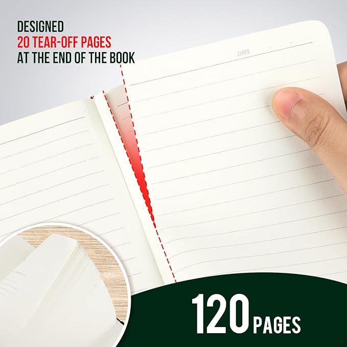 - 【3 Pack Notebooks】Our pocket notebook set offers 3 green mini notebooks, ideal for students, professionals, businessmen and travelers. With 40 sheets plus 20 tear-off sheets (a total of 120 pages), you'll record your thoughts and ideas at any time