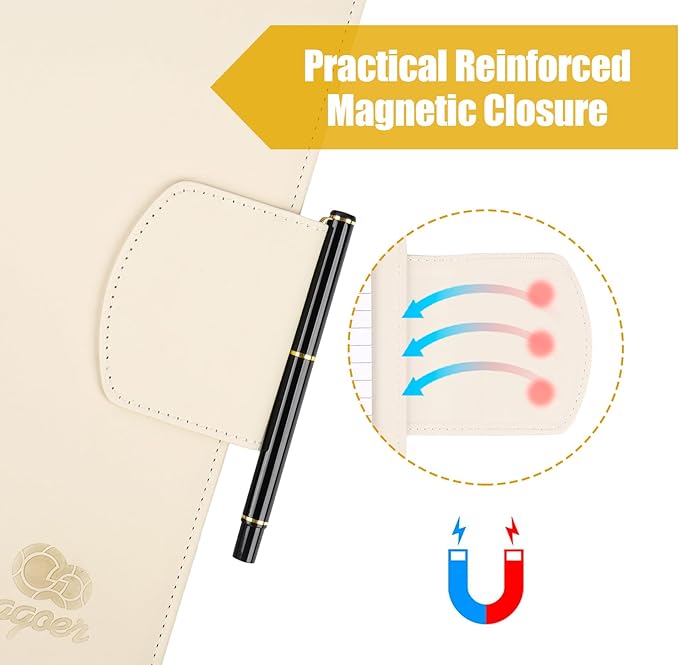- Organizer Padfolio's Material - This planner padfolio with cover made of high-quality PU leather material,reinforced stitching and buckle closure,make the Portfolio more durable and easy to clean, odorless, waterproof.Notepad portfolio with 3 magnetic buckle designs to helps you maintain orderliness and professionalism in various usage scenarios.