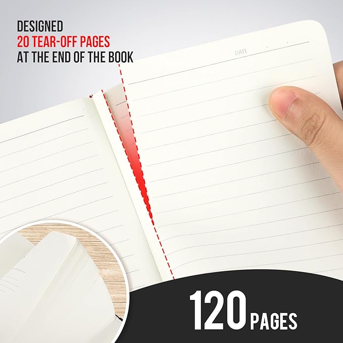 - 【3 Pack Notebooks】Our pocket notebook set offers 3 black mini notebooks, ideal for students, professionals, businessmen and travelers. With 40 sheets plus 20 tear-off sheets (a total of 120 pages), you'll record your thoughts and ideas at any time