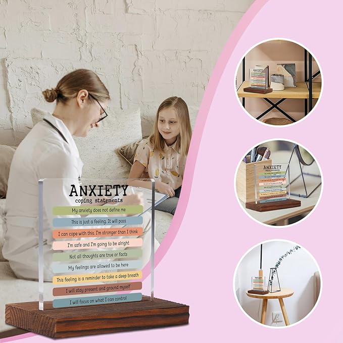 - Therapist Office Decor Plaque: This sign not only decorates but also serves a therapeutic purpose, reminding clients and therapists alike of the effective strategies for managing anxiety and staying grounded in challenging situations.