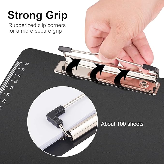 2 Pack Clipboards 8.5x11, Plastic Clipboards,Black Clipboard,Letter Size,Paper Clips,Nursing Clipboard,Paper Clip Holder,Document Holder,Writing Board with Ruler, A4 Letter Size for Offices School