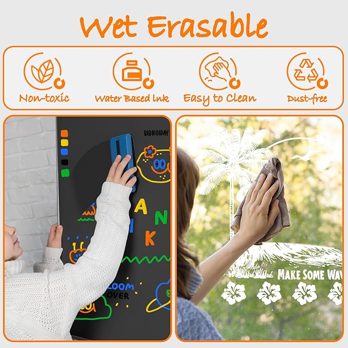 - EASY TO CLEAN - GOTIDEAL liquid chalk pens will keep your design in perfect condition,non-toxic, water-based liquid chalk markers can be erased easily by wiping the area with a damp cloth or paper towel.