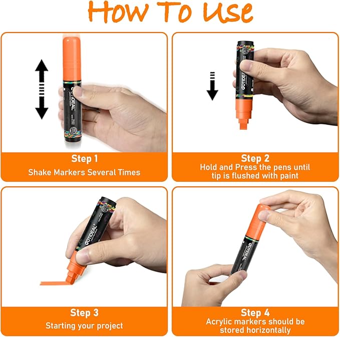 - 12 VIVID COLORS - GOTIDEAL Wide Tip Chalk Markers use new upgraded ink that brings more fluorescent colors to our customers . All colors are extremely pigmented, vibrant, and long lasting