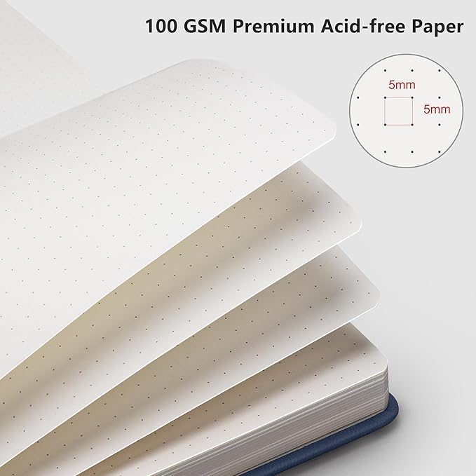 - BULLET DOTTED JOURNAL: RETTACY Bullet Dotted Journal comes in A5 (5.7'' × 8.3'') size, 96 Sheets/192 Pages, durable and smooth Leather Hardcover, 100 GSM Acid-free Paper, Elastic Closure Band, Pen Holder, 2 Ribbon Bookmarks, Inner Pocket, Bullet Journaling Stencils
