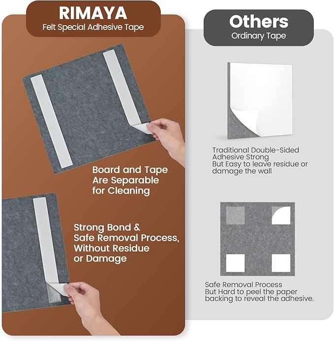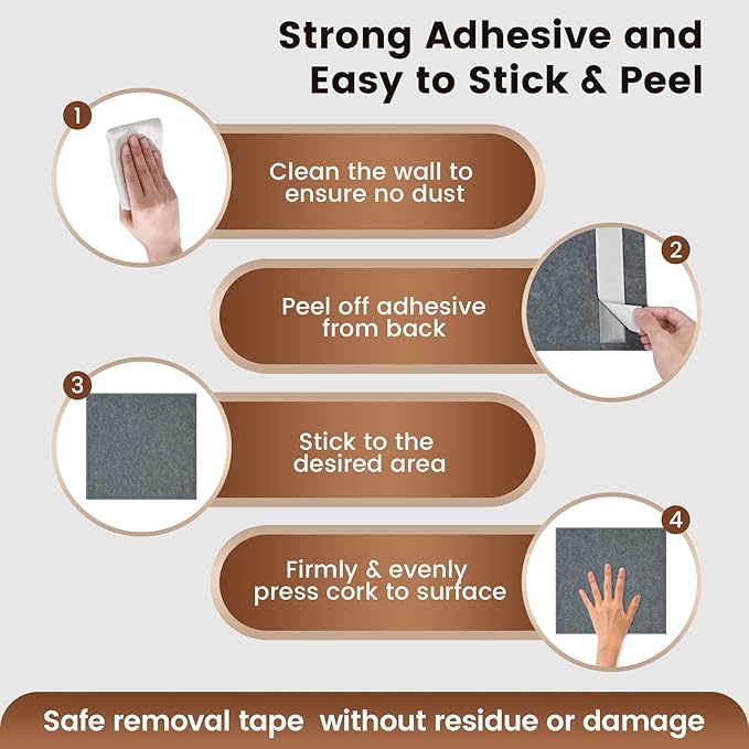 - 【Strong Adhesive & Easy to Stick and Peel】:Equipped with special adhesive tape, our cork boards stick securely to your wall and can be peeled off safely without leaving any residue or causing damage. The adhesive tape is separable from the corkboard, enabling you to remove and reinstall the panels as needed, even after cleaning.