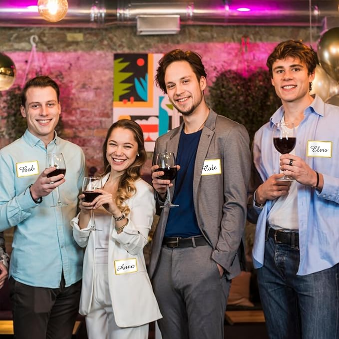- 📀These gold name tags sticker with white background and foil stamping on the border can easily manage all kinds of activities, unlike ordinary name stickers, the classic gold border design makes you more elegant.
