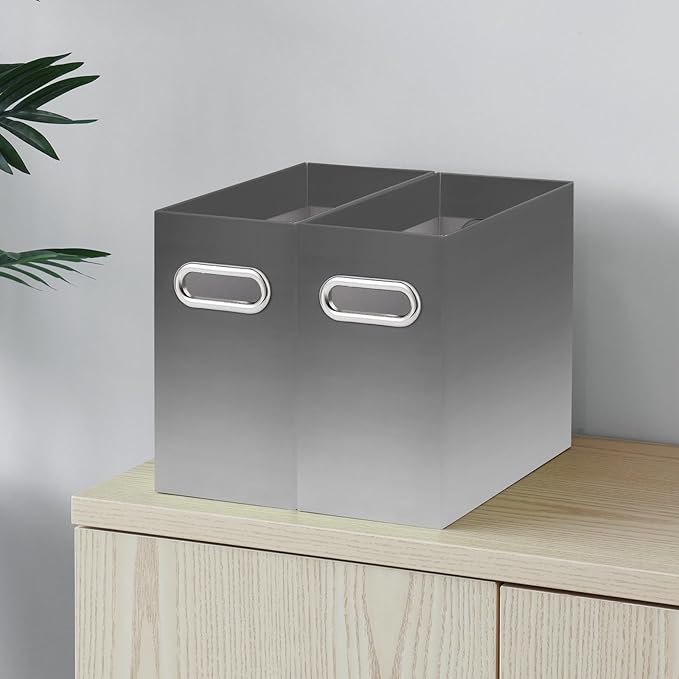 Oterri File Organizer, Small Storage Box, Cardboard File Folder Organizer, Collapsible File Box, Hanging File Organizer for Letter Size, Portable File Box, Only Box (Gradient Light gray,2 Packs)