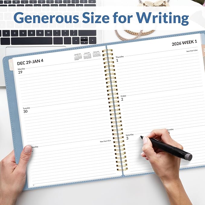 SUNEE 2026 Weekly & Monthly Planner 9"x11.2"- 12 Month (January 2026 - December 2027), Vegan Leather Cover, Pocket, Bookmark, Notes, Monthly Tab, Gay Blue