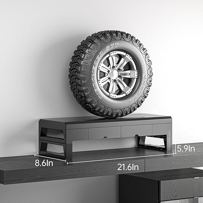 - 【Sturdy and Stable】The monitor riser is made of a 21.6*8.66 inch metal plate and ABS premium desk leg modules, with a maximum weight capacity of 110 lbs, providing stable support for various items.