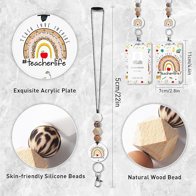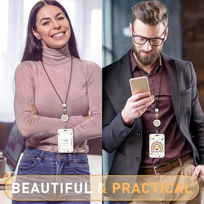 - Fashionable Badge Holder: Elevate your style with the teacher badge holder. Its elegant design is complemented by four skin-friendly silicone beads, 3 natural wood beads, and a graceful acrylic plate, adding a fashionable touch to your attire