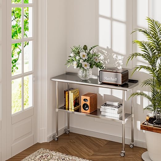 - All-Purpose Utility: Whether you're a home cook or a pro in a commercial kitchen, this table is up to the task. It's suitable for both indoor and outdoor use, from home kitchens to restaurants, bakeries, butcher shops, patios, garages, laundry rooms, and more