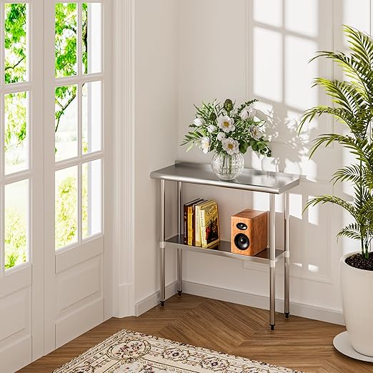 - All-Purpose Utility: Whether you're a home cook or a pro in a commercial kitchen, this table is up to the task. It's suitable for both indoor and outdoor use, from home kitchens to restaurants, bakeries, butcher shops, patios, garages, laundry rooms, and more