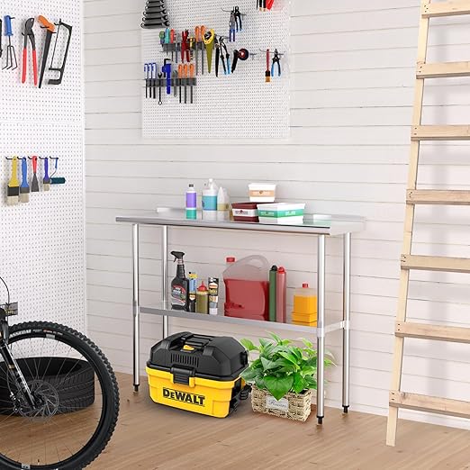 - All-Purpose Utility: Whether you're a home cook or a pro in a commercial kitchen, this table is up to the task. It's suitable for both indoor and outdoor use, from home kitchens to restaurants, bakeries, butcher shops, patios, garages, laundry rooms, and more