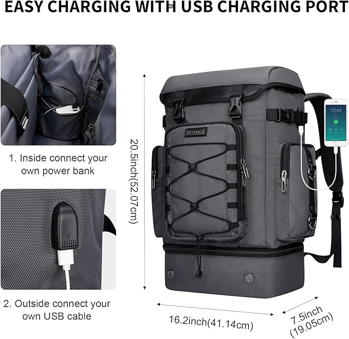 - Multi Functional Backpack: This carry-on backpack comes with a 35 to 50 inch removable and adjustable shoulder strap which can be hidden in a large zipper pocket on the back, enabling multiple carrying options: duffel bag, crossbody bag, shoulder bag.