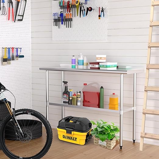 - All-Purpose Utility: Whether you're a home cook or a pro in a commercial kitchen, this table is up to the task. It's suitable for both indoor and outdoor use, from home kitchens to restaurants, bakeries, butcher shops, patios, garages, laundry rooms, and more