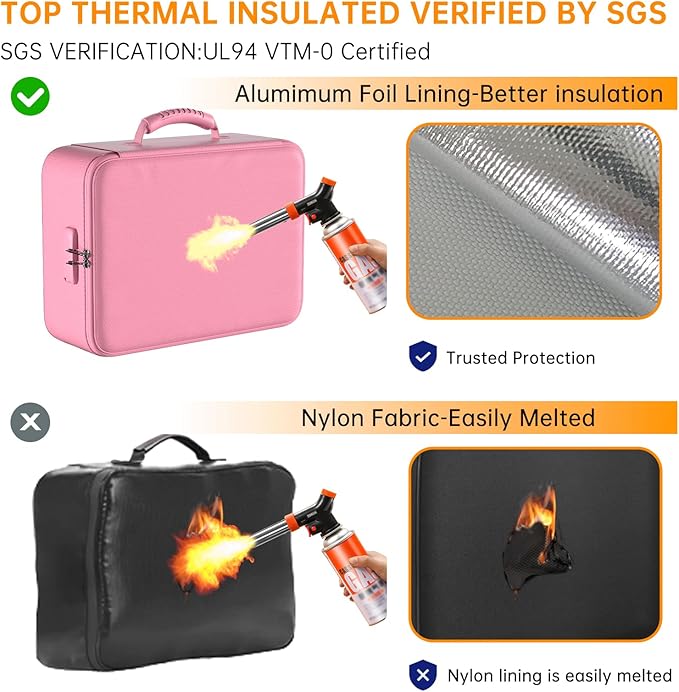 - 5200°F Fireproof & Water-resistant safe: The Upgraded important document organizer is made of thickened silicone coated fireproof cotton material and aluminum foil which withstand the temperature up to 5200℉(double safe protection). Aluminum foil lining isn’t easily melt under high temperature after several tests. It has been passed by SGS TEST(UL94 VTM-0 Certified).The bag is fireproof&Water-resistant, which can effectively protect your important documents in a fire, flood, and wet weather
