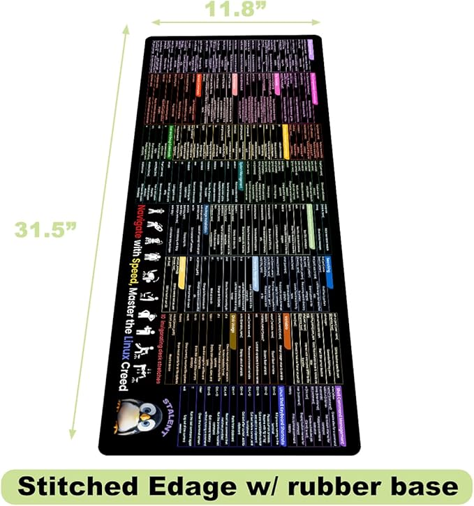 - ✅ Ultimate Linux Command Reference: Packed with essential command lines for Linux/Unix, this mouse pad acts as a handy cheat sheet for developers, programmers, and IT professionals. Quickly access commands for networking, file management, system control, and more—saving time and boosting efficiency.