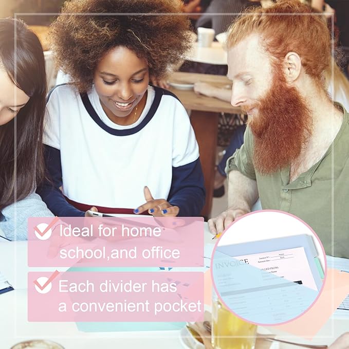 - 5. Versatile Applications: Use our index dividers to separate important documents and assignments, helping you stay organized during a busy day at work or school. Perfect for office binders, school supplies, or home office use, our letter pocket dividers are a must-have accessory for anyone seeking to maintain an organized binder system.