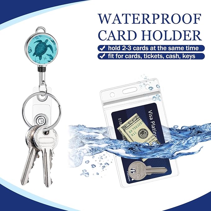 - Novelty Design: This necklace ID badge lanyard and retractable badge reel features a striking design inspired by the unique patterns of turtle. The cute and vibrant aesthetic of the turtle pattern adds a touch of natural beauty to the lanyard, making it a stylish and eye-catching accessory for carrying ID badges. Package Included: ID lanyard retractable reel x2, thickened waterproof ID holders x2