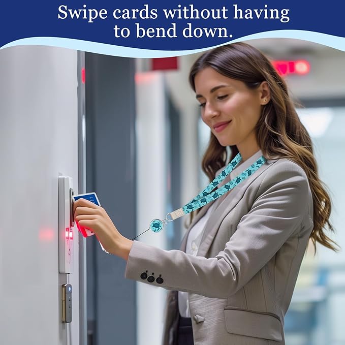 - Retractable Badge Reel: This lanyard with retractable badge reel can extend up to 15.75 '', allowing you to swipe the ID card to the desired position without the need to take them out or bend down. The cute badge reel is made of sturdy plastic and steel, ensuring durability and wear resistance. Moreover, this badge reel also comes with a split key-ring for attaching keys