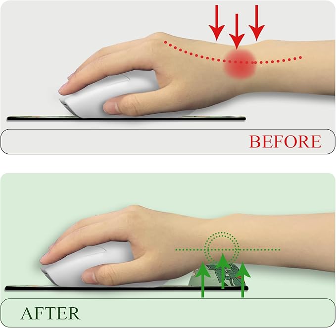 - Ergonomic Design: Our mouse pad is specifically designed with a wrist rest to provide ergonomic support and comfort during long hours of computer use. The wrist rest helps to reduce strain and fatigue on the wrist, allowing for a more comfortable and productive working experience