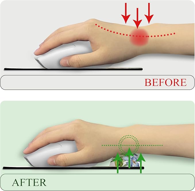 - Pain Relief and Comfort: The wrist rest on our mouse pad provides gentle cushioning and support, relieving wrist pain and discomfort. It promotes proper wrist alignment and reduces the risk of repetitive strain injuries, allowing you to work or play for extended periods without discomfort