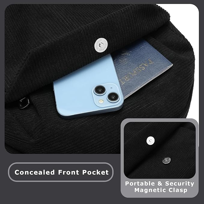 YGR Laptop Backpack for Women and Men, Waterproof Lightweight Travel Daily Rucksack Casual 15.6 inches Computer Bags for College, Black Corduroy