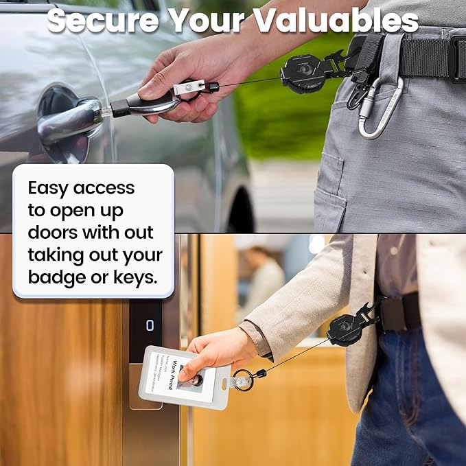 - 【Accessories for Adaptability】The badge reel comes with a zinc alloy carabiner and PVC badge clasp, which not only allows you to hang your badge holder, keys, gadgets, and other accessories, but also helps you to open the beer cap smoothly. It can be easily fixed on belts, backpacks and other items, it is also a practical gift for men, boyfriends, family and friends.