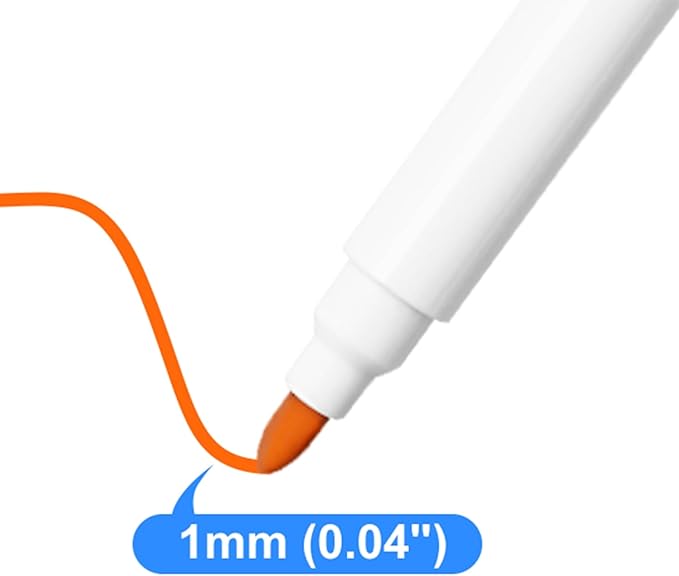 - Easy to Write, Easy to Read, Easy to Erase. 8 markers with vibrant colors are visible on the white background. The markers with 0.04in (1mm) fine pen tip are smooth to write on the organic glass acrylic whiteboard. It is extremely easy to erase with just a piece of soft wet cloth/towel or wet tissue dipped with water, no ghosting, no smudge, no stains.