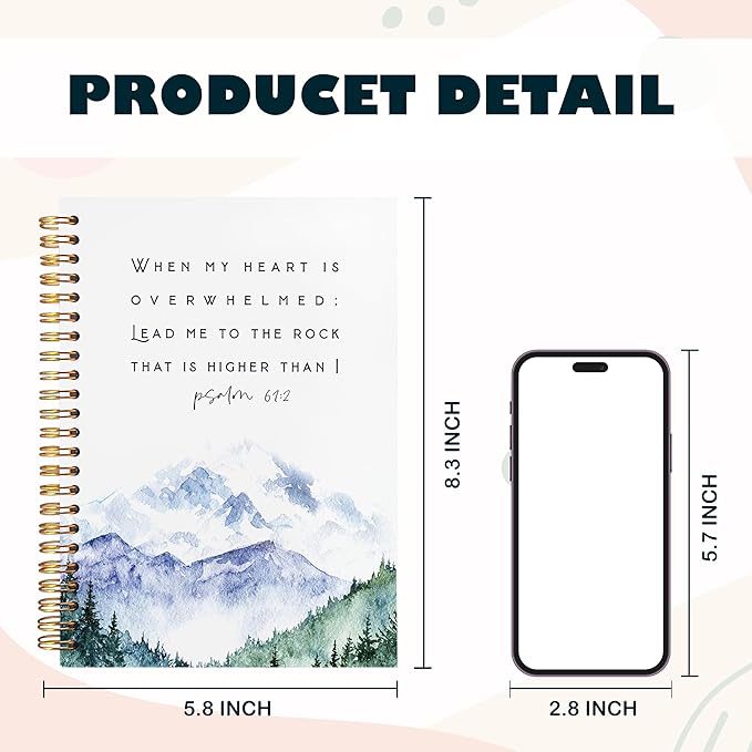 BearCake Christian Notebook Journal, Prayer Journal for Women, Lead Me To the Rock That is Higher Than I Bible Notebooks for Note Taking, Watercolor Mountain Hardcover Spiral Notebook 5.5x8.3