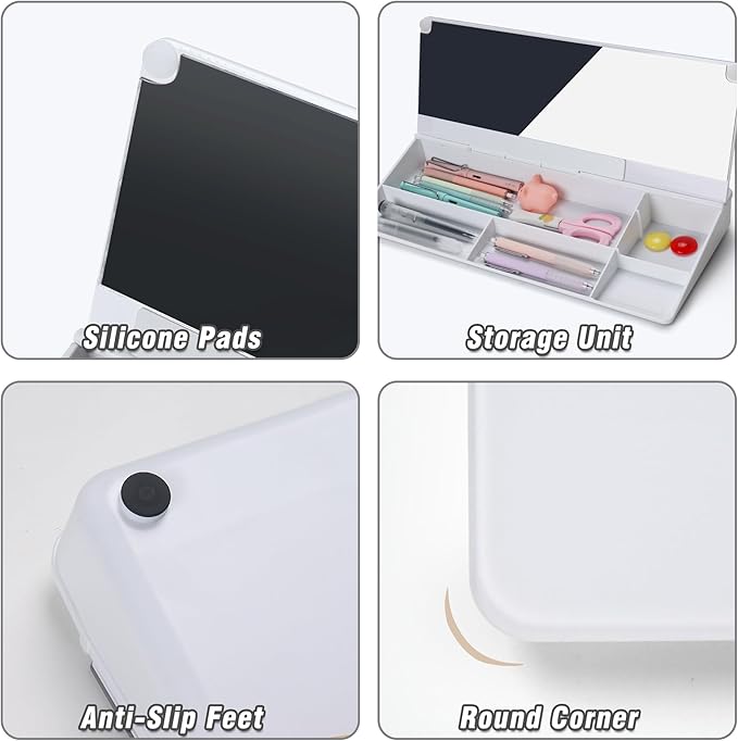 - 💯MULTIFUNCTIONAL: Writing+Storage+Hold iPad/phone/pen+Keyboard Stand, our desktop white board is an all in one multipurpose desk board buddy. Equipped with 2 white dry erase marker and 1 blue eraser. One purchase, All in place!